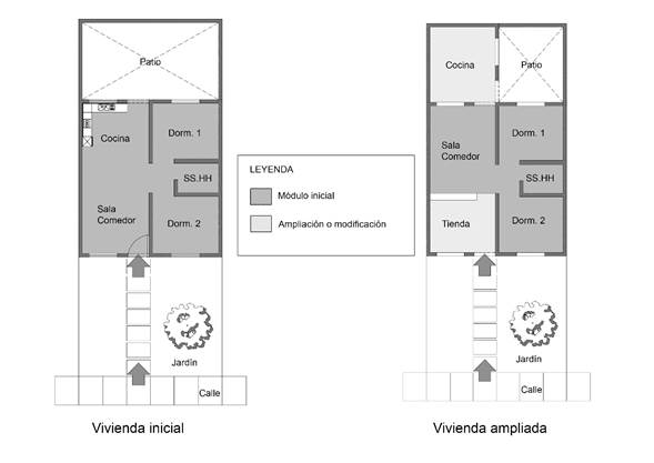 Para dilucidar el proceso de adaptación-ampliación de las viviendas según los requerimientos de los habitantes, recuperamos la perspectiva de Ortiz (2015), quien diferencia la vivienda como producto terminado y como proceso. El primer tipo carece de flexibilidad para adaptarse a las posibilidades de las familias y cuando es destinado a sectores de bajos ingresos, corresponde al concepto de vivienda mínima. El segundo tipo reconoce la práctica social de las personas de acuerdo con sus recursos y necesidades; si está bien diseñada, es más flexible para adaptarse a largo plazo a la dinámica familiar y concuerda con el concepto de vivienda incremental y progresiva.