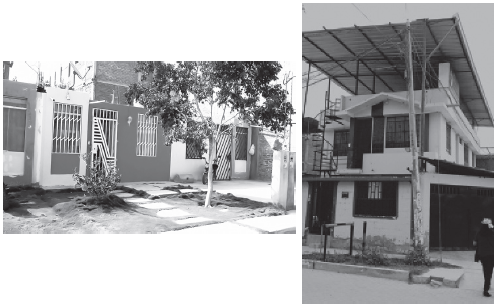 Se realizan intervenciones habitacionales para acoger a la familia extensa o para generar renta a través del alquiler de habitaciones, la instalación de una bodega o un taller de servicios. El ingreso generado es particularmente importante para las mujeres jefas de hogar. Una de ellas, del barrio TP de Piura, declara: “Yo me mantengo de lo que gano de esta bodega en mi casa, pago agua, luz y lo que necesitan mis dos niños que van al colegio” (Luisa, 28 años, barrio TP). Asimismo, los residentes mantienen en los espacios públicos áreas verdes entre la vereda y la vía vehicular, construyen mobiliario en los parques, instalan tranqueras y casetas en las calles para garantizar la seguridad ciudadana. Esta lógica de apropiación de lo construido crea un tejido urbano informal que se mezcla con el proyecto basado en decisiones formales y funcionales.