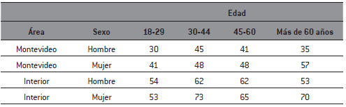 Se realizó una muestra estratificada de 850 casos por conglomerados, polietápica, según sexo, tramos de edad y región, con un nivel de confianza de 95% y un máximo de error de +/- 3,2%. Se detalla a continuación la cantidad de casos. Tabla 1