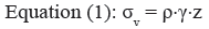 The static stress field was calculated by means of a plug-in within the IGMAS+ software. The calculation directly considers the geometry of the modeled surfaces, the magnitude of the densities and the volume of the polyhedra. The vertical stress ((v) is the magnitude of the lithostatic pressure (equation 1) exerted on a point at a depth of "z" by the material on top of it with a density of "p" and the acceleration of gravity (y). The value for the normal gravity "y" was calculated with the international gravity formula WGS1984 (National Imagery and Mapping Agency, 1997) and has a magnitude of y = 978188.38 m/s2 for a latitude of 10°N, which represents central Costa Rica. Equation 1 describes the calculation of vertical stress at a given depth for a single rock layer with a homogeneous density.