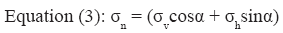 The normal stress on a given dipping surface is known by the sum of the vertical (av) and horizontal (ah) stress components that are perpendicular to the surface. In the context of convergent plate margins, Tassara (2010) defines the normal stress (an) in terms of the orientation of components for a given point on the plate interface of the subduction zone. This definition is depicted in figure 2A and represented in equation 3, where a is the subduction dip and ah is the horizontal stress caused by plate convergence.