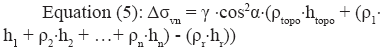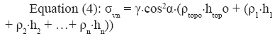 The normal component of vertical stress (oj encompasses the effect of the forearc density structure and the geometry of the plate interface. Equation 4 from Gutknecht et al. (2014), shows how this component is calculated for a model with "n" amount of layers and accounting for the effect of topography. The geometry of the plate interface is reflected in the dip angle (a) of the subduction zone.