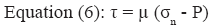 It is using Coulomb's law of friction, that Tassara (2010) defines "t" as the shear stress on the plate interface (equation 6), which, assuming that there is no cohesion, is dependent on: the static friction coefficient "u" (Cattin et al., 1997), the pore pressure of fluids in the material (P), and more relevant for this interpretation, the normal stress (o ).