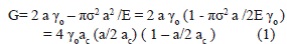 El término γo es la tensión superficial del material fracturado, que no debe confundirse con la dispersión γ obtenida del análisis de las granulometrías de depósitos de ceniza, al utilizar el modelo SFT. El valor ac hace mínima la energía G. Dado que G es la energía de una fractura, el término γoac podría considerarse como una unidad característica de energía de la fractura. Por lo tanto, adimensionalmente podemos re-escribir la ecuación anterior como