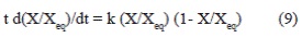 Relación con t d(X/Xeq)/dt = k (X/Xeq) (1- X/Xeq )