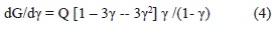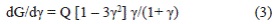 La ecuación (3), en el caso de que el denominador pueda aproximarse a la unidad, se reducen a la ecuación (1) aplicando la relación γ2 = Ka, con K= γ2eq / ac (Brenes-André, 2016). La expresión (3) corresponde al caso de dispersión negativa, y la (4) a dispersiones positivas y en ambos casos el coeficiente Q< 0 tiene unidades de energía. El término γ extra en el numerador se incorporó para lograr que la energía libre G sea mínima cuando T>TC para γ = 0, y mínima para γ≠0 cuando T<TC, para poder aplicar el modelo de Landau. Siguiendo a Landau, el término TC, corresponde a la temperatura a la que sucede la transformación de fase. La inclusión explícita de las temperaturas T y TC se desarrolló en Brenes (2016), vía el parámetro adimensional τ = (T- Tc)/T.