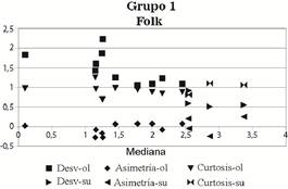 En Cuadro 2 se muestran los valores de desviación estandard, asimetria y curtosis versus la mediana, tanto para oleada como para supensión.