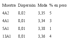 En un mismo evento eruptivo, es común encontrar que varias de las distribuciones de Weibull detectadas con ayuda del SFT tienen modas similares, producto quizá de la constancia de las propiedades físico-químicas del magma (Sheridan et al.,1987), y que pueden ser considerada como una sub-población.