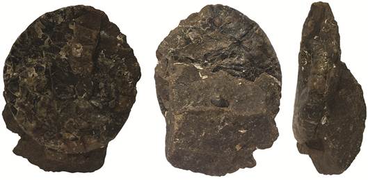 Material: un fragmocono septado de pequeño tamaño el cual fue colectado por Martín J. Mora durante la realización de la gira de campo del módulo de Geología de Costa Rica del INA y depositado en la colección de fósiles de la Sección de Geología del Departamento de Historia Natural del Museo Nacional de Costa Rica, bajo el código CFM-5273 (Fig. 2).