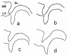 El patrón de las líneas de sutura en la especie Aturia cubaensis (Lea, 1841) se caracteriza por presentar una silla mediana convexa, sillas laterales amplias y subcirculares, cuyos extremos por lo general no llegan a unirse en la costura umbilical y un lóbulo ventral lanceolado, ligeramente inflado cuyo extremo posterior se aproxima mucho al borde lateral de la silla mediana de la sutura posterior (Fig. 3a). Este patrón se observa claramente en el ejemplar del presente estudio (Fig. 3a), al igual que en el ejemplar descrito por Miller et al. (1955) para el Caribe de Costa Rica (Fig. 3b), así como en ejemplares de otras latitudes (Fig. 3c) y permite diferenciarlo del patrón de la línea de sutura que presenta la otra especie del Mioceno, Aturia aturi (Basterot, 1825), caracterizado por lóbulos ventrales triangulares con el extremo posterior agudo, septos separados por amplios espacios entre sí y las sillas laterales presentan extremos convergentes que se unen en la costura umbilical (Fig. 3d).
