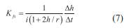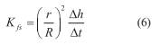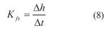 Donde Δh y Δt representan la variación de altura de la columna de agua en el anillo interno en un periodo de tiempo definido La tasa de infiltración puede evaluarse de manera instantánea (entre dos medidas consecutivas) o de manera global (en relación a la altura inicial de columna de agua). En el largo plazo ambas tasas deberían converger. Sin embrago para tiempos menores, diferencias importantes pueden observarse entre ambas, lo cual influye directamente sobre la estimación de Kfs .