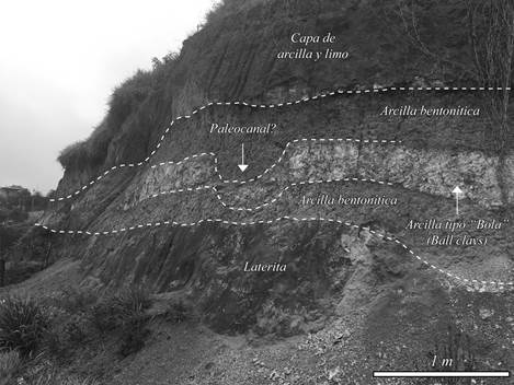 En general se observa que sobreyace a la Capa de Laterita El Rincón por medio de un contacto plano. La primera capa y la tercera están compuestas por arcillas bentoníticas, asociadas a periodos con mayor actividad volcánica de emanación de cenizas. La segunda capa está conformada por arcillas de tipo “bola” o “ball clays”; presentan tonalidades amarillentas debido al aporte de posible caolinita; se observa además una estructura donde la continuidad de la capa se interrumpe, asociada probablemente a un paleocanal. Finalmente, la cuarta capa está compuesta por arcillas ferruginosas y limos y presenta espesor mayor al de las capas subyacentes. Se considera que está asociada a un incremento en la sedimentación de material detrítico inducido por una mayor actividad lluviosa, y representa el último estadio de la sedimentación en la microcuenca.
