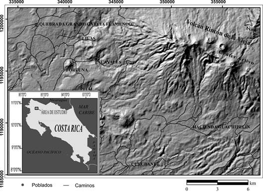 El volcán Rincón de la Vieja es el único volcán históricamente activo de la cordillera de Guanacaste (1700 al 2020), con el edificio eruptivo volumétricamente más grande de (300 km2; 118 km3), el cual posee 9 cráteres en su cima, uno de ellos con actividad eruptiva histórica y prehistórica con un lago hiperácido en su interior (Tassi et al., 2005; Alvarado, 2009). En la ladera sur de este volcán afloran depósitos volcánicos primarios relacionados con el volcán Rincón de la Vieja (suelos de cenizas, caída piroclástica, corrientes de densidad piroclástica diluida), no todos ellos debidamente datados (Fig. 1). En este trabajo se aportan nuevas edades de los principales depósitos muestreados, afinando la cronoestratigrafía previamente propuesta (p. ej., Kempter, 1997; Kempter, Benner, y Williams, 1996; Soto, Alvarado, Goold y Climent, 2003a; Soto, Alvarado y Goold, 2003b) y aportando los posibles periodos de ocurrencia en función del índice de explosividad volcánica. Además, se redefinió la edad de la capa Río Blanco, la cual posee una edad significativamente más reciente que aquella establecida en la literatura e, incluso, dicho lapso se ha tomado como base para los estudios de peligro volcánico. La capa Río Blanco (Kempter et al., 1996), llamada también Tefra Quebrada Grande (Melson, 1988), constituye uno de los eventos explosivos más relevantes durante el Holoceno en la cordillera de Guanacaste, por lo que su cronología es fundamental, no solo para la historia del volcán, sino para la evaluación del peligro volcánico. También, se estableció su correlación temporal con las corrientes de densidad piroclástica presentes en el flanco norte del Rincón de la Vieja.