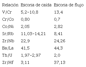 Ya Soto et al. (2003b) habían notado similitud geoquímica y petrográfica entre la pómez de la CDP y aquellas de caída, pero no tanto en las escorias entre ambos, aunque concluyeron que no eran eventos coetáneos con base en el número reducido de dataciones disponibles. En el presente trabajo, no solo se concluye que son eventos contemporáneos, sino, además, que son comagmáticos, dado que las relaciones de los elementos traza son similares (Cuadro 4). Melson (1988) describe que la capa RB está compuesta por dos subsets el cual cada uno tiene a ser composicionalmente más ácido, una secuencia que suele ser inversa a lo observado en tefras composicionalmente zonadas. Sin embargo, el subset superior es más básico que el primero.