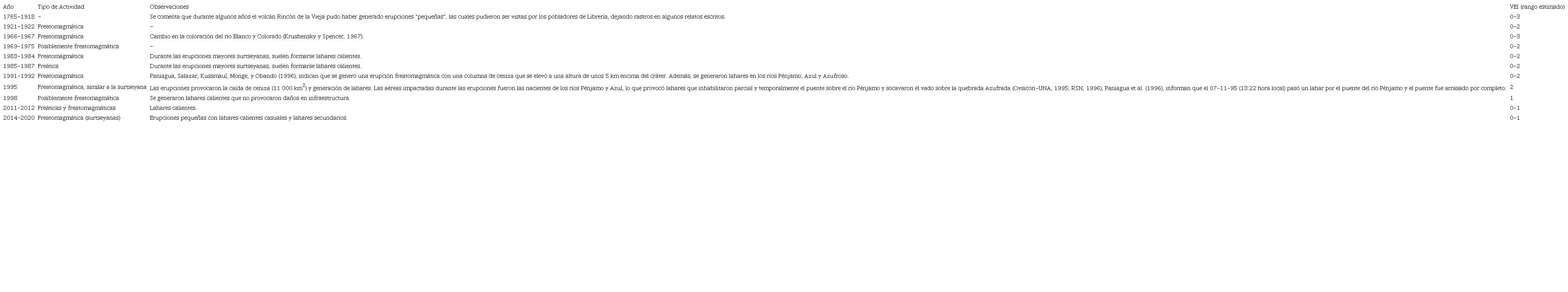 Keywords: Rincon de la Vieja, Rio Blanco plinian deposit, eruptive frequency, Middle Holocene, Upper Holocene, historical eruptive activity.