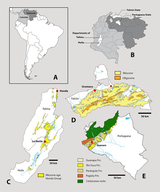 TYPE LOCALITY. - About 9 km E of Villavieja and 2.5 km NE of Hacienda Argentina, Huila, Colombia (Fig. 1A; 1B; 1C).