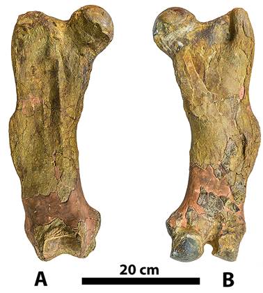 As previously noted, when Collins (1934) described Pseudoprepotherium venezuelanum he did not identify a repository nor provide a catalog number for the specimen. Consequently, it was not known whether the type still existed or if it did where it was located by subsequent researchers. Therefore, the only available information on the anatomy of the type femur was the illustrations included with the original description, so subsequent taxonomic interpretations of the genus and species were restricted to the illustrations and not first-hand examination of the specimen. We discovered that the holotype of Pseudoprepotherium venezuelanum had been transferred to the National Museum of Natural History, Smithsonian Institution in Washington (USNM) (USA) from Johns Hopkins University. It is cataloged as USNM V 13860 (Holotype) with the associated description: Appendicular element, right femur, published by Collins, 1934. Johns Hopkins Univ. Studies Geol. (n.11): 235, pl.15, 16, collected by Love, W. M., in the Miocene of Venezuela.