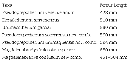 Based on our examination of the type of Pseudoprepotherium venezuelanum the purpose of this paper is to refine these relationships by re-examining the morphological features of the femur upon which the various taxa are based and revise the taxonomic relationships of these taxa.