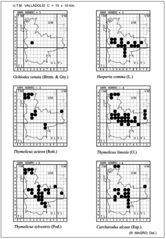 Keywords: Lepidoptera, Hesperiidae, provisional atlas, UTM, Valladolid, Spain.