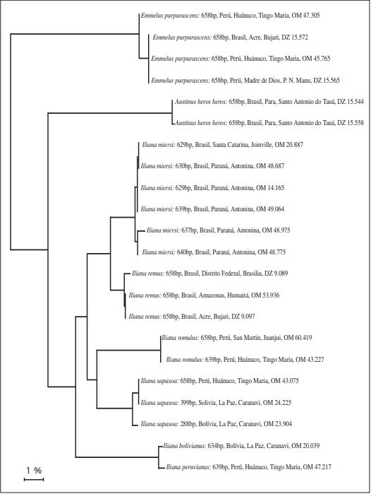 O DNA barcode (Fig. 1) mostra uma grande diferença em relação às espécies de Iliana.