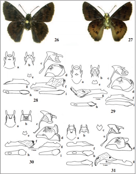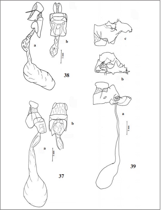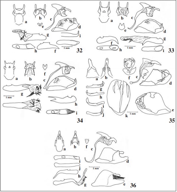 Considerando que a maioria das espécies nunca foi figurada, apresenta-se fotografias e desenhos das genitálias de todas as espécies.