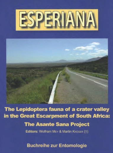 ![]() | Mey W., Krüger M.. The Lepidoptera fauna of a crater valley in the Great Escarpment of South Africa: The Asante Sana Project. 2019. Bad Staffelstein. Hermann H. Hacker. 550pp.. 978-3-9820357-1-0 |