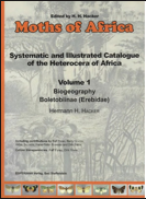 ![]() | Hacker H. H.. Moths of Africa. Systematic and Illustrated Catalogue of the Heterocera of Africa. Volume 1. Biogeography Boletobiinae (Erebinae). 2019. Bad Staffelstein. ESPERIANA Verlag. 815pp.. 978-3-9820357-0-3 |