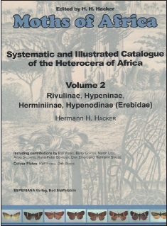 ![]() | Hacker H. H.. Moths of Africa. Systematic and Illustrated Catalogue of the Heterocera of Africa. Volume 2. Rivulinae, Hypeninae, Herminiinae, Hypenodinae (Erebidae). 2021. Bad Staffelstein. ESPERIANA Verlag. 120pp.. 978-3-9820357-2-7 |