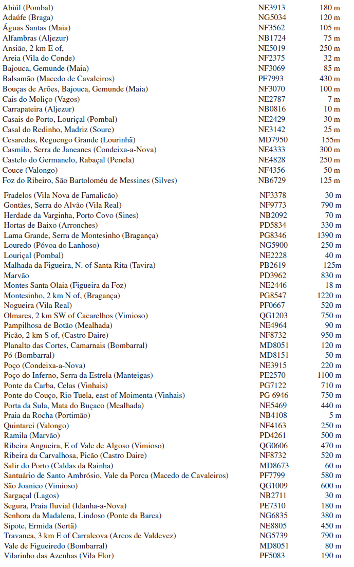 BB: Segura, 10-VI-2020, Silva, Jesus and Nunes; M: Senhora da Madalena, Lindoso, 17-VII-2020, Silva, Jesus and Nunes.