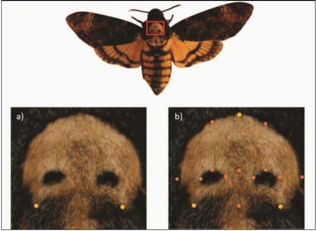 The skull-shape located onto the thorax seems to be quite different and variable among all the analysed specimens, and it could be used as a natural mark for individual recognition in A. atropos. That is, the colour pattern of the dorsal part of the thorax, and its use for photoidentification provides a reliable tool to identify specimens of this species and it can become an alternative to conventional marking techniques. Consequently, this is the first time ever that it is demonstrated in any moth species. Other species of the genus Acherontia [Laspeyres], 1809 such as A. lachesis (Fabricius, 1798) and A. styx Westwood, 1847 have similar skull-shape onto the thorax, thus suggesting that photoidentification may be a useful individual technique within the genus.