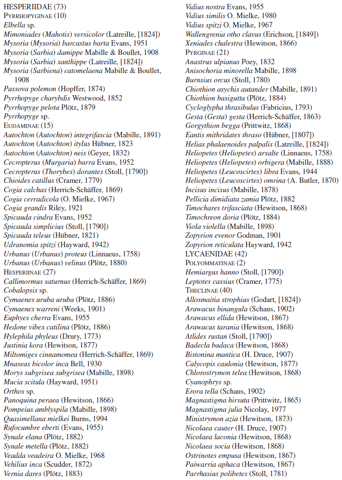 MIELKE, O. H. H., CARNEIRO, E. S. & CASAGRANDE, M. M., 2010.– Lepidopterofauna (Papilionoidea e Hesperioidea) do Parque Estadual do Chandless e arredores, Acre, Brasil.– Biota Neotropica, 10: 285-300.