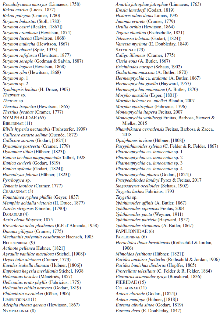 SOLDATI, D., SILVEIRA, F. A. D. & SILVA, A. R. M., 2019.– Butterfly fauna (Lepidoptera, Papilionoidea) in a heterogeneous area between two biodiversity hotspots in Minas Gerais, Brasil.– Papéis Avulsos de Zoologia, 59: 1-9.