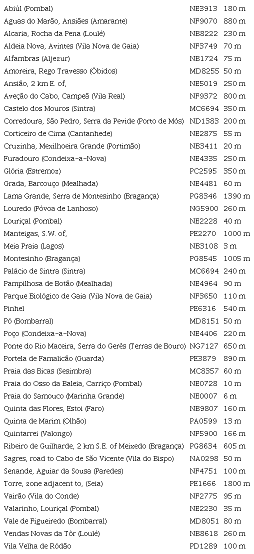 The entry for species new for Portugal concludes with a summary of the known European distribution, and available information on the larval host-plant, given in square brackets if the information comes from outside Portugal.