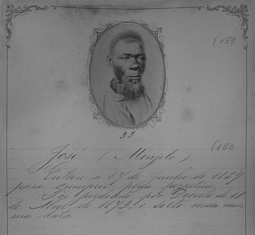 José Monjolo foi condenado a prisão perpétua em 1859, mais de uma década antes de ser fotografado, quando aparece já bem envelhecido. Sua origem é congo-angolana. Acabou perdoado por decreto de 11 de abril de 1873 (Figura 2).