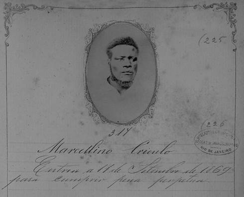 Marcelino Crioulo, quem sabe não era filho de um muçulmano? Ainda jovem, foi condenado à prisão perpétua em 1869. Chama a atenção a barba límpida, bem cortada e o olhar (Figura 3).