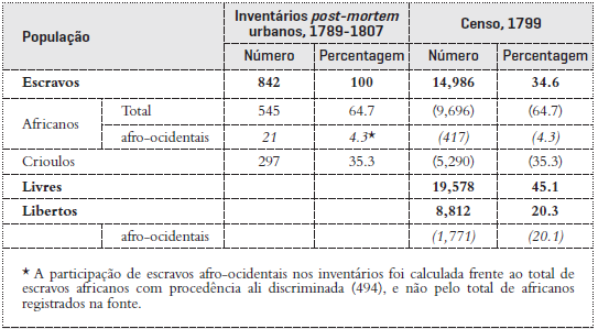 Diferentes fontes apontam para a exiguidade dos escravos provenientes da África Ocidental entre a população cativa do Rio de Janeiro, na última década do século XVIII e por toda a primeira metade do século XIX. Revelam também a grande importância deles na população liberta.