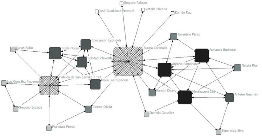 En los apartados anteriores ha sido presentada una serie de datos relacionales que vincularon a Aurora Coronado con diversos sujetos marginales de la Ciudad de México de la primera década del siglo pasado, los cuales son representados gráficamente en la Figura 3.