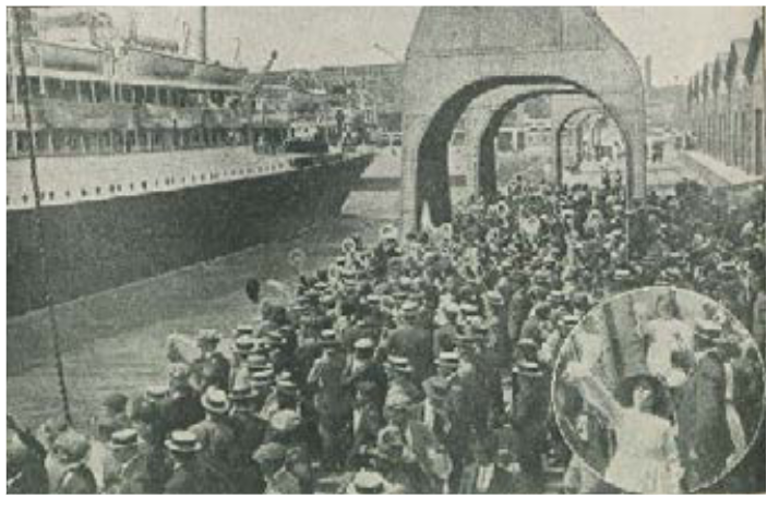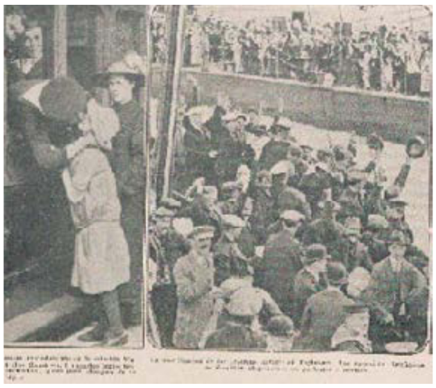 Los semanarios ilustrados captaron la tensión de estos momentos de diferentes formas, publicaron panorámicas de los barcos y de las conglomeraciones de personas para poder dar el último beso o abrazo de despedida a sus familiares. Las fotografías de las dársenas y estaciones ferroviarias repletas muestran el involucramiento de esas familias, es decir, de los que se quedan con aquel que se va. Estos dejaban atrás hermanos, parentela, hijos, esposas y padres. La familiaridad del escenario del puerto, de la estación de ferrocarril muestran que las despedidas eran un evento familiar, comunitario y, por tanto, multitudinario.16