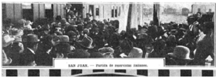 Asimismo, otros centros urbanos como Rosario, San Luis, San Juan, Salta, etc. (Figuras 3 y 4, a modo de ejemplo) se convirtieron en escenarios de la partida de reservistas para las trincheras y testimoniaron ese gran movimiento de gente por las calles donde se llevaban adelante las despedidas antes de embarcarse para la antigua patria.