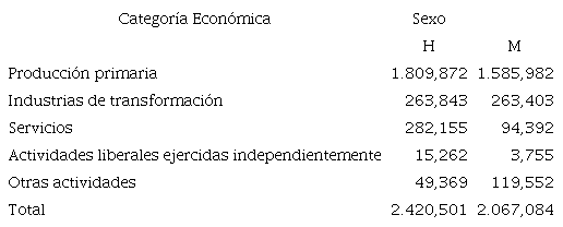 Una aproximación a este panorama la ofrece el Censo de 1938,19 el cual muestra la distribución de la población económicamente activa por rama de actividad. En total presenta cinco categorías a su vez subdivididas de manera muy específica por oficios que hacen parte de esa rama económica, los datos también se plantean considerando la división por género. A modo de síntesis se presenta el siguiente cuadro: