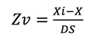 Donde Z representa el valor estandarizado de la variable v,Xi el valor observado de v, X es el valor medio del conjunto de valores i y ds es la desviación estándar del conjunto i.