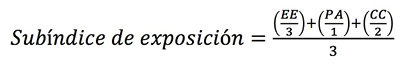 Donde EE corresponde a los valores estandarizados y normalizados de los indicadores de eventos extremos, PA a los valores de problemática ambiental y CC a los valores de cambio climático.