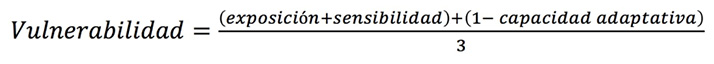 Para estudiar la vulnerabilidad es necesario abordar los tres elementos que la componen: 1) exposición: medida en la cual el sistema se encuentra expuesto a variaciones en el clima; 2) sensibilidad: nivel intrínseco del sistema a verse afectado por los cambios en el clima, y 3) capacidad adaptativa: capacidad que tiene una comunidad o sistema para hacer frente a los cambios en el clima (ipcc, 2001;ipcc, 2007;iica, 2013).