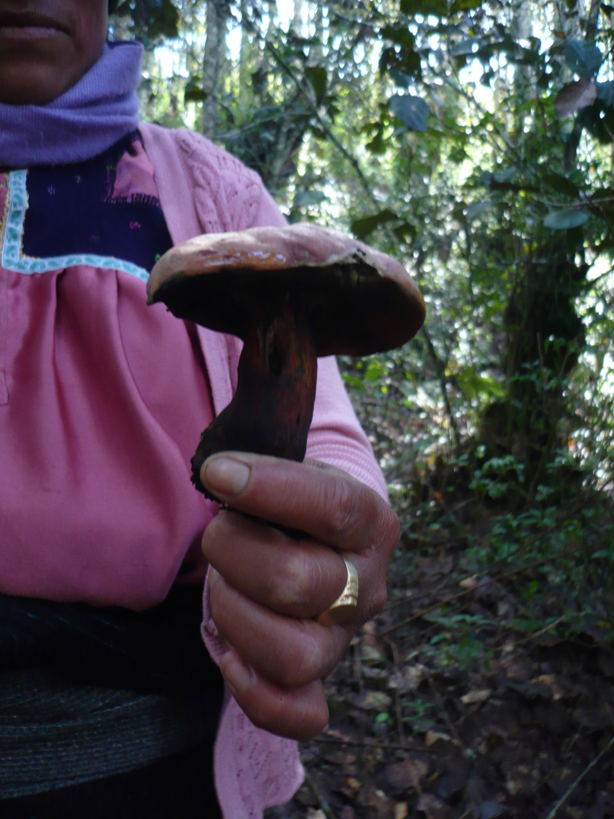 Antes comía, pero ya cambió mucho, ahora hay mucha milpa y mucha fumigación, ya no son buenos los hongos. Sí, yo comía el sekum t’ul que se manchaba [Boletus luridus] y no me pasaba nada, pero ahora es diferente, ya hay mucha fumigación. El checheval mail [Lepista sp.] sale cerca de la milpa, por eso lo dejan y no lo cortan. Antes no había líquido, por eso no se intoxicaba la gente. Antes que salía el checheval mail se cortaba, pero no se fumigaba. Porque si hay milpa arriba y se fumiga luego escurre el agua y envenena al hongo. Lo que la gente come yo creo que es yuyo, no se equivoca, pero se envenena por el líquido, por eso yo ya no quiero comer (Anónimo, septiembre de 2017).