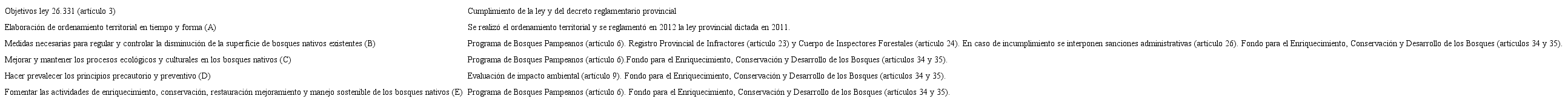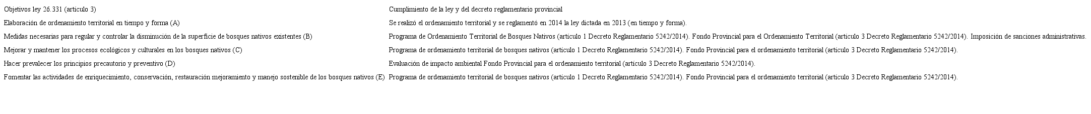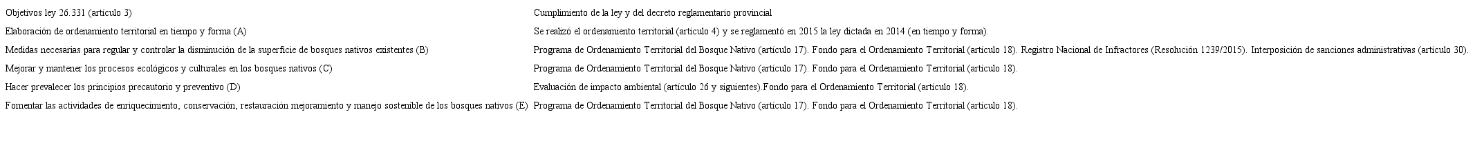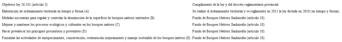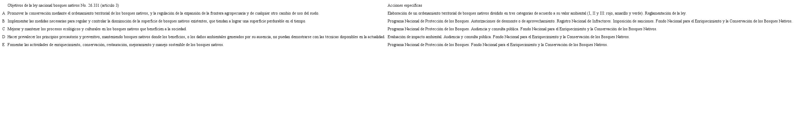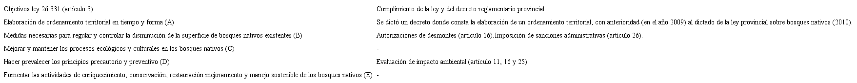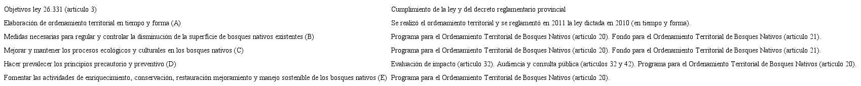 A continuación se realizará el análisis de los objetivos centrales de la Ley Nacional de Presupuestos Mínimos Ambientales No. 26.331 para la Protección de los Bosques Nativos de 2007 (elaborado en formato de cuadro), en contraste con las leyes provinciales seleccionadas dentro de la región forestal del Espinal.
