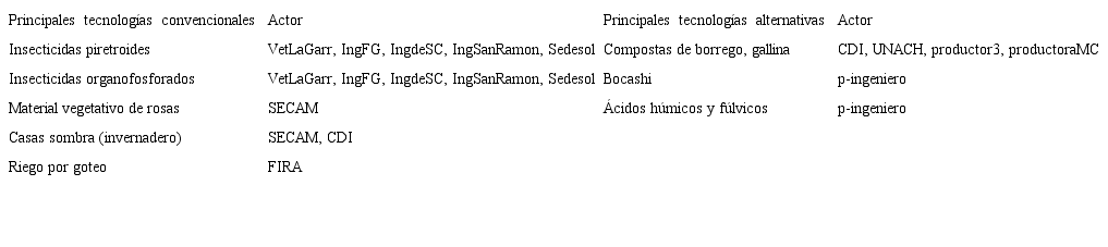 Por otra parte, el análisis cualitativo de la red permitió develar información relevante que el cálculo de intermediación de actores no revela por sí solo. Se encontró así que la calidad de las interacciones comerciales es baja y motiva a los floricultores a tratar de modificarlas. Estas interacciones influyen en las percepciones sobre tecnología, pero no de forma determinante para fomentar el empleo de tecnologías convencionales o alternativas.