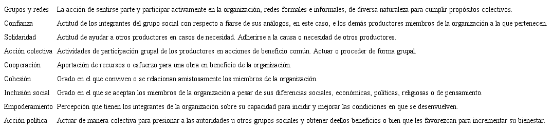 Este trabajo analiza el capital social comunitario, que se refiere a individuos que forman parte de un grupo y está relacionado con las normas y redes que otorgan a dichos individuos la capacidad de actuar de manera colectiva, siendo la fuente de esa capacidad no los individuos sino la suma e interacción de éstos, agrupados en una organización, en busca del logro de un objetivo común. Se optó por este tipo de capital social porque privilegia la acción colectiva sobre la individual, además, en las organizaciones campesinas permite a los productores y sus familias alcanzar objetivos que estarían fuera de su alcance si actuaran de manera individual o aislada. Al respecto, Bebbington y Torres (2001) consideran que los estudios de capital social ofrecen la posibilidad de adentrarse en el conocimiento del mundo de las organizaciones y sus relaciones con los procesos de desarrollo, pues permiten una efectiva observación de las redes de confianza, mecanismos de solidaridad, lazos culturales e identidad política que como parte del tejido social explican el accionar de las organizaciones.