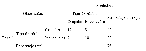 En el modelo de regresión logística múltiple se definió como variable dependiente al edificio enfermo (área de licenciatura y posgrado) y como variables independientes los síntomas y trastornos que manifiestan los usuarios de un edificio. A partir de la regresión logística se pueden estimar probabilidades o efectos a partir de un conjunto de datos. En el análisis de bondad se puede concluir que el modelo es significativo, ya que reporta un porcentaje global del 75 % de los casos (Cuadro 11). Por lo anterior, se puede aceptar el estudio debido a que el porcentaje indica el número de casos que el modelo es capaz de predecir correctamente a partir de los datos.