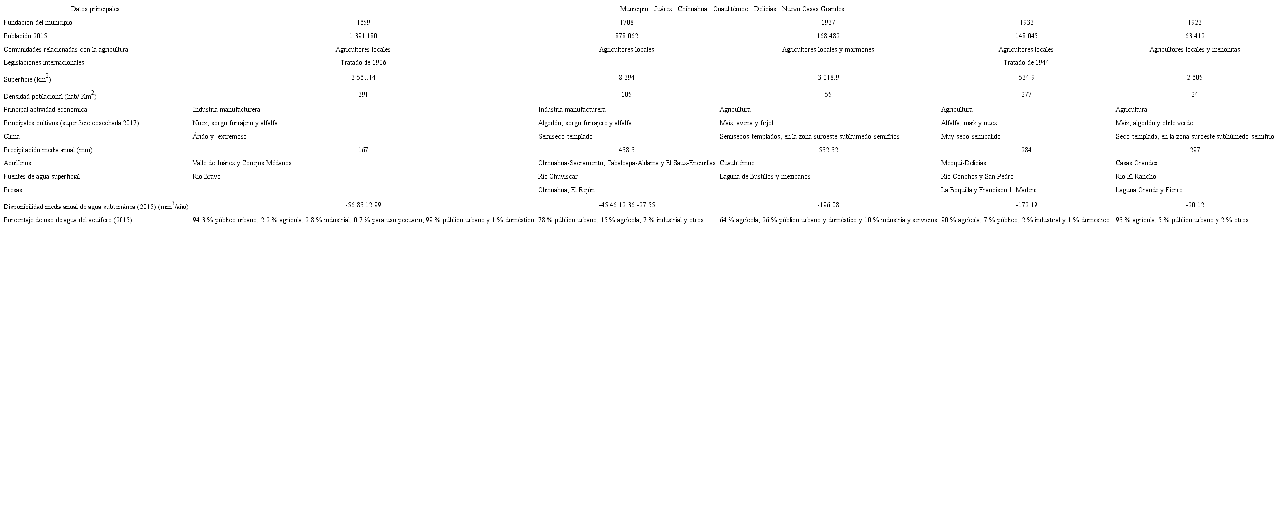 Palabras clave: relación agua-agricultura, agua binacional, interacciones socioambientales, comunidades mormona y menonita, industria maquiladora.
