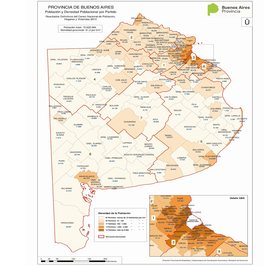 Dirección de Estadística-Ministerio de Economía de la Provincia de Buenos Aires (s/f). “Mapa de la provincia de Buenos Aires”. Recuperado de http://www.estadistica.ec.gba.gov.ar/dpe/images/cartografia/pdf/Densidad_Poblacion_Censo2010.pdf (última consulta 18 de enero de 2020).
